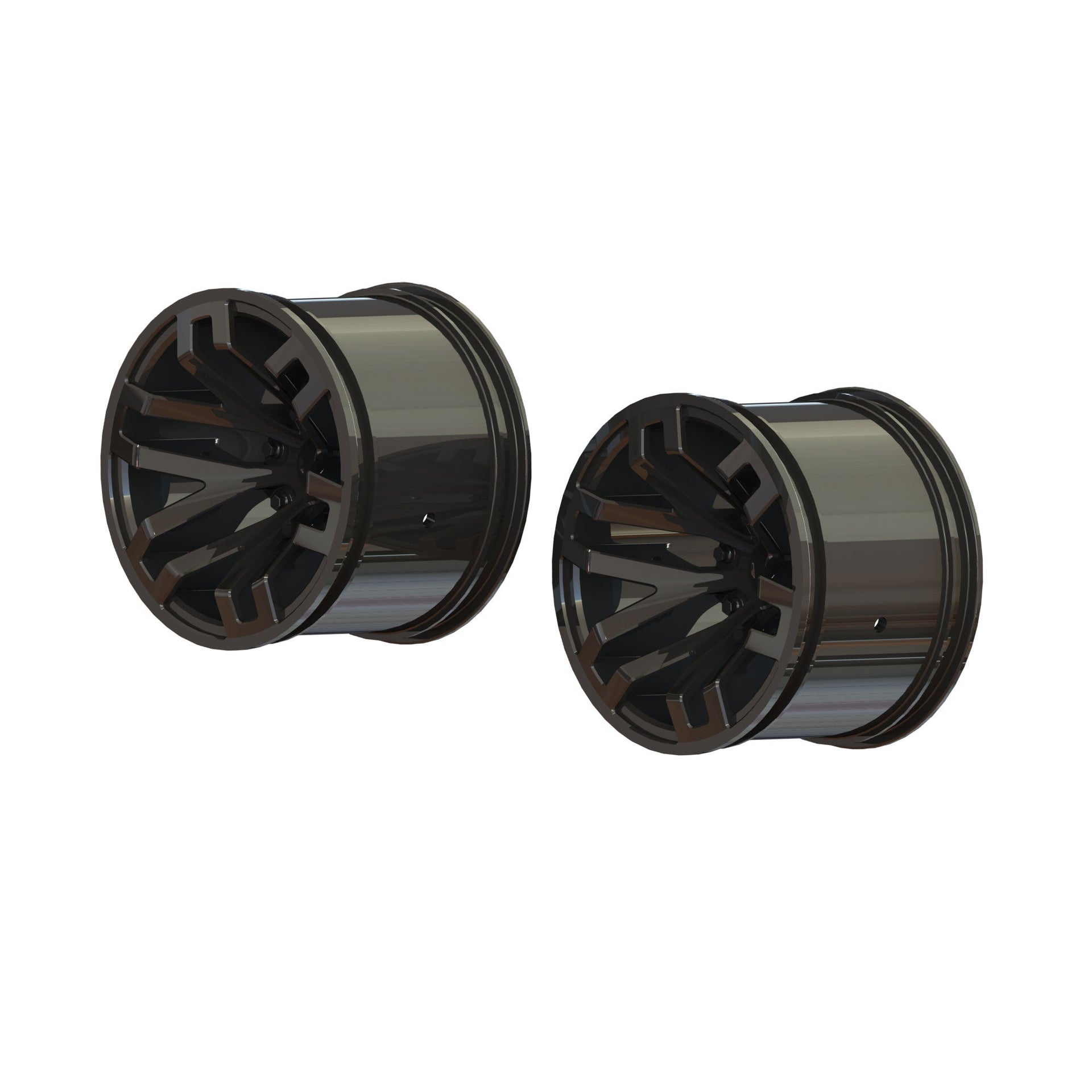 ARA510099 1/10 MT Front/Rear 2.8 Wheels, 14mm Hex, Black Chrome (2)