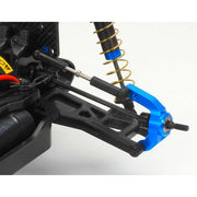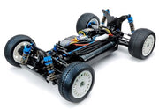 This 1/10 scale R/C chassis assembly kit, the TT-02 and TT-02B variant (B for buggy off-road kits) are among the most beginner friendly R/C products in our line-up. The TT-02BR chassis is an upgraded version of the TT-02B kit with a wealth of upgraded parts, plus new aluminum propeller joints and carbon fiber damper stays to ensure a wide range of setup adjustments. Included Hop-up Option Parts: NEW-Aluminum propeller joints NEW-Carbon fiber damper stays Item 22049: XV-02/TT-02 Oil Gear Differential Unit Item 54501: TT-02 Aluminum Propeller Shaft Item 54768: 06 Module Hard Coated Aluminum Pinion Gear (17T) Item 54993: TT-02B/DF-03 Aluminum Damper Set Item 53793: DF-02 Two-Way Aluminum Rear Uprights Item 54539: TT-02B Full Turnbuckle Set Item 53791: DF-02 Assembly Universal Shaft Item 53880: Large Dish Wheels (4WD/Front, 62/25) Item 53881: Large Dish Wheels (Rear, 62/35) Item 54211: TRF201 Rear Wing Set Item 54815: TT-02B Reinforced Gear Covers & Lower Suspension Arms (2pcs.) Item 54926: TT-02 Lower Deck (Hard/Black) • Drivetrain uses Item 22049-oil filled gear to adjust the effectiveness of gear differential by using different oil viscosities. • *Diff. joint cups designed for this chassis kit for improved durability. • New front and rear damper stays give more set up options of oil dampers and upper arms. • Using front and rear universal drive shafts ensures stable drivetrain regardless of suspension stroke. • Propeller shafts have plastic parts at joint sections of aluminum joint cups and shafts to limit wear of joint cups. • Includes two rear wings - Neo Scorcher kit-standard one (transparent) and Item 54211 (TRF201 Rear Wing Set). Change wing stay when using Item 54211 TRF201 Rear Wing Set. • Item 54211 includes two wide design wings to adjust downforce depending on running surface condition, and wing stay spacers also included to adjust rear wing angle. • 4~6mm longer turnbuckle shafts help prevent plastic adjuster sections from deforming to ensure improved suspension movement. • Steering linkage with flange pipes features improved durability by attachment using hex head screws and lock nuts compared to attachment using 3x18 step screws. • Features full ball bearings. • Comes with a carrying case dedicated for the TT-02BR chassis. • Required to complete: 2-channel radio, steering servo, ESC, 540 motor, off-road tires, 7.2-7.4volt battery with compatible charger, and Tamiya PS paint. The kit includes the Neo Scorcher body and wing, plus the wing set Item 54211.