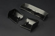 Includes rear wing and left and right front wing elements - Provided pre-painted in stealth black - Precisely machined mounting holes for fast and easy fit to your model - Strong and durable polycarbonate material - Molded-in cut lines for fine aero balance adjustment