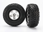 5875X Tires & wheels, assembled, glued (SCT satin chrome, black beadlock style wheels, SCT off-road racing tires, foam inserts) (2) (2WD front)