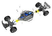 Slash 4X4’s tough clipless body holds firm no matter how rough the action gets. Heavy-duty latches grip the body tightly, but release in just seconds to access the chassis. Slash’s hidden latching system replaces time-consuming and inconvenient body clips with large, reinforced panels to resist pull-through damage.