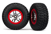 Tires & wheels, assembled, glued (S1 ultra-soft, off-road racing compound) (SCT Split-Spoke chrome, red beadlock style wheels, BFGoodrich® Mud-Terrain™ T/A® KM2 tires, foam inserts) (2) (4WD f/r, 2WD rear)