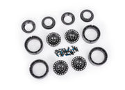 Take your TRX-4M™ to the next level with these black-anodized aluminum beadlock wheels. Made from tough 6061-T6 aluminum, these functional 1″ beadlock wheels look great on your TRX-4M and provide maximum grip on the tire bead. Beadlock wheels work with standard TRX-4M tires and the optional 9782 Mickey Thompson® Baja Pro X® off-road tires. Add the optional 9780 brass wheel weights to give your TRX-4M even more stability for tough technical maneuvers. Includes inner and outer rims (4), center barrels (4), and 2x8 mm mounting screws (24).