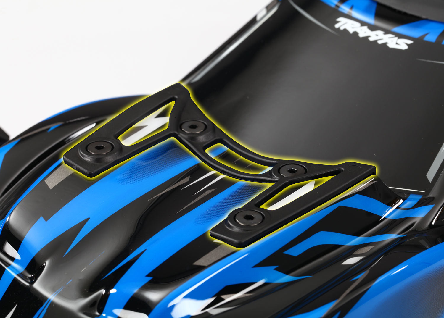 Traxxas body reinforcement sets provide added protection for your Rustler 4x4 or Rustler during extreme driving. These high-strength composite reinforcements help spread impact forces through the body, ensuring long-lasting fun through the toughest landings and hardest hits.
