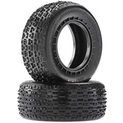 The ultra low-profile carcass keeps a truck very predictable and consistent in high-grip conditions while pointing the vehicle in the correct direction. JConcepts has added side-wall ribs in a circular pattern to the exterior of the tire to support high-grip racing. The pink compound marked with 2 pink dots on the tire represents a new compound for JConcepts, a medium soft material with good wear characteristics. The Swagger front tire includes open cell inserts for the best performance in a variety of conditions.