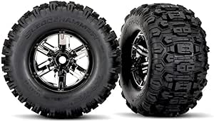 7774A Traxxas Sledgehammer Tires on Black Chrome Wheels for X-Maxx (2)