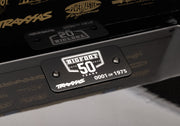 Traxxas commemorates the 50-year history of BIGFOOT with 1,975 numbered trucks, each with its own laser-etched aluminum plaque showing the serial number along with matching aluminum badges on the body and chassis. Commemorative bodies and gold accessories will not be sold separately.
