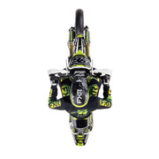 What the Promoto-SM shares with the breakthrough Promoto-MX is an innovative blend of mechanical and electronic technology that work together to provide a realistic experience that no other RC bike can touch. The electronics include a 2700Kv motor and steel flywheel that are both mounted in the center of the frame. The motor spins the flywheel at over 22,000 rpm to create a gyroscopic force for unparalleled stability. Patent-pending Spektrum MS6X technology takes your input from the Spektrum DX3PM transmitter and commands the Promoto-SM to lean, turn, and wheelie with unprecedented balance and finesse.