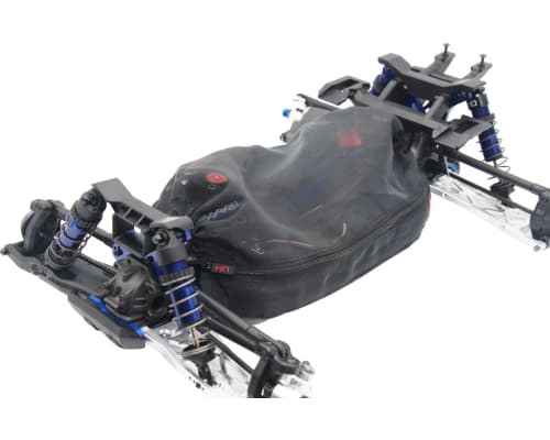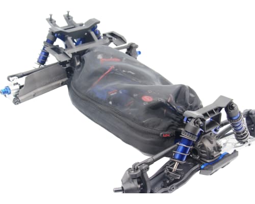 Hot Racing dirt guard chassis cover for the 1/8 Arrma TRA Sledge The chassis cover attaches to the chassis with easy-to-apply hook and loop tape; has zipper chassis access; and uses a breathable Nylon mesh to repel water and protect the chassis from dirt and debris.