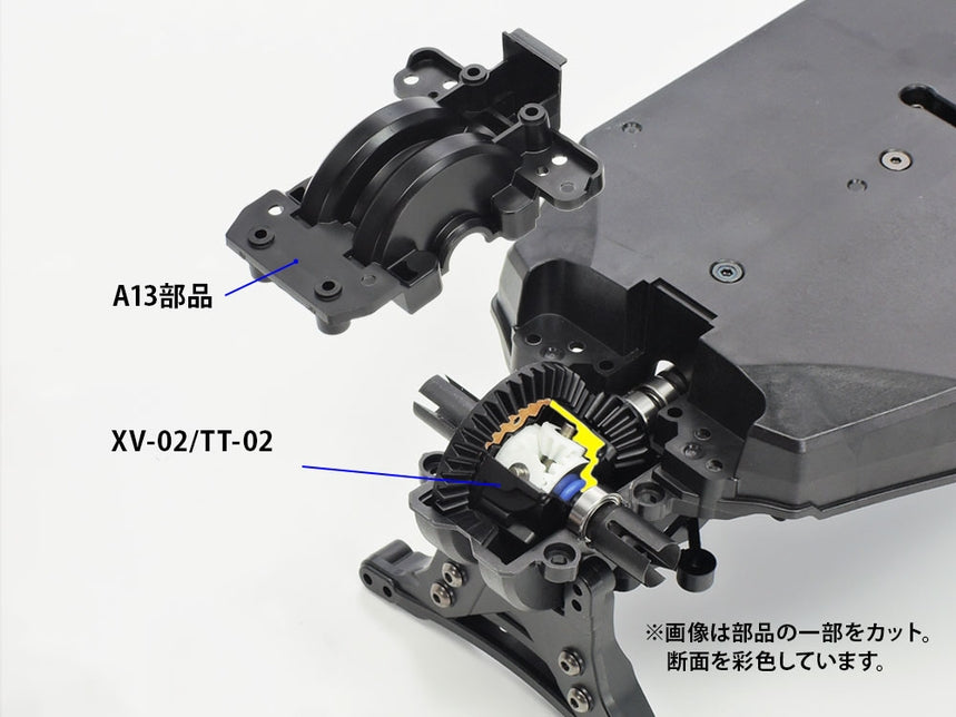 When using as a center oil-filled diff unit, on the XV-02 chassis, make sure to use with Item 22050 (06 Module Spur Gear 70T).