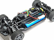 These Tamiya blue anodized aluminum front and rear propeller joints are option parts designed for the TT-02 chassis. Like the TT-02 Aluminum Propeller Shaft (Item 54501), they reduce the power lost in the transmission from the stock resin parts.