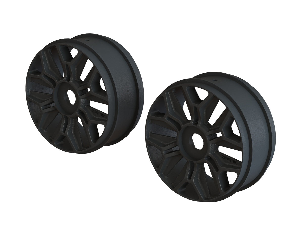 Multi-spoke design for stylish looks and increased strength - Tough nylon for durability on all surfaces - Black color for head-turning ARRMA styling - 17mm Hex fit for strength during extreme driving action and easy servicing