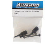 Team Associated Apex2 Stub Axles and Dogbones. These replacement stub axles and dogbones are intended for the Team Associated Apex2. Package includes two stub axles and two dogbones.