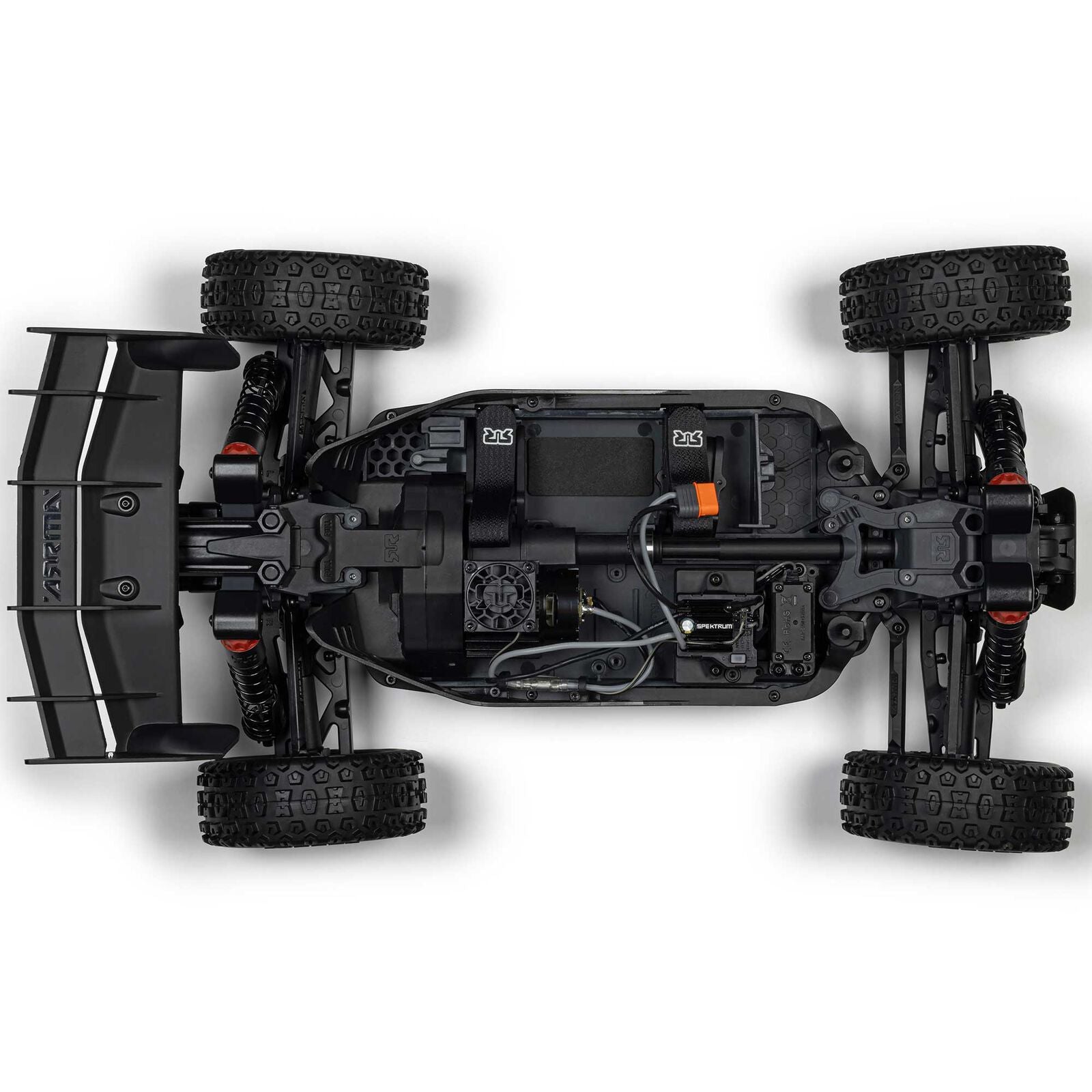Move up to next-level buggy bashing with the 1/8 scale ARRMA TYPHON MEGA 665 4x4. Updated with an oversize 665 motor, 3S brushless-ready transmission, and even tougher design, it’s a bigger, better RTR basher that grows right along with your skills.