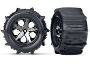 3689 Llantas y ruedas Traxxas, ensambladas, pegadas (2.8") (ruedas All-Star cromadas en negro, llantas para paletas, inserciones de espuma) (parte trasera eléctrica) (2) (clasificación TSM)