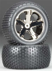 Este es el juego de ruedas y neumáticos Traxxas All Star montados de 2,8". CARACTERÍSTICAS: Ruedas cromadas negras All Star de 2,8" Patrón acanalado neumáticos alias INCLUYE: Dos llantas traseras montadas de 2.8", ruedas cromadas All Star y espuma insertos para vehículos eléctricos REQUIERE: Instalación en vehículo Especificaciones: Diámetro exterior: 4,13" (105 mm) Ancho: 2,04" (52 mm) Diámetro interior: 2,79" (71 mm) Tamaño hexagonal: 12 mm COMENTARIOS: All Star Wheels disponibles por separado, TRAC5569