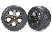3776A Llantas y rines, ensamblados, pegados (rines cromados negros All-Star, neumáticos Anaconda®, inserciones de espuma) (nitro trasero/delantero eléctrico) (1 izquierdo, 1 derecho)