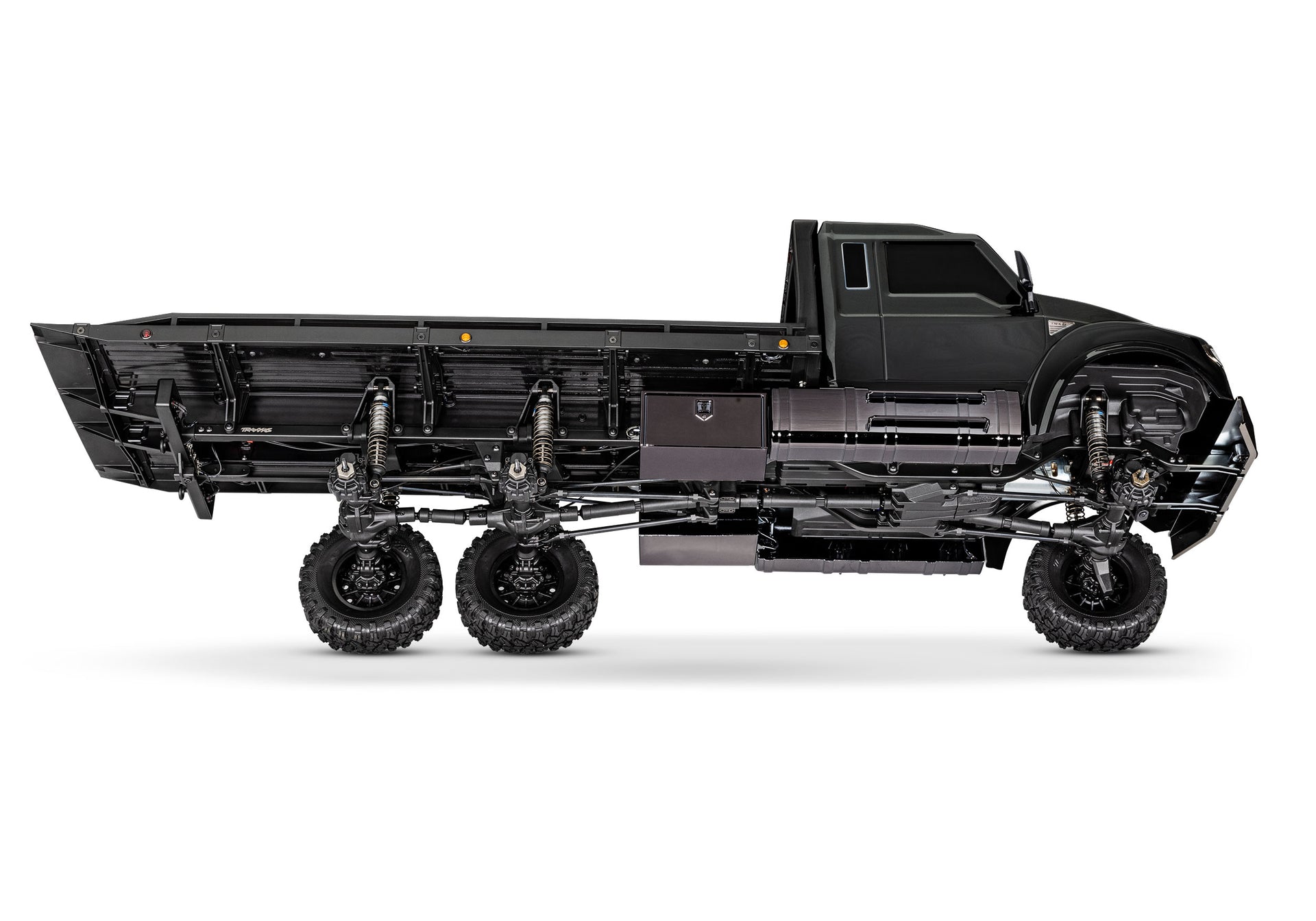 Construido sobre la plataforma TRX-6 de gran capacidad, el Ultimate RC Hauler utiliza seis ruedas motrices para entrar en acción con un agarre conquistador de tres diferenciales T-Lock ™ con bloqueo remoto para volver a salir. Una transmisión de rango alto/bajo con cambio remoto amplifica el torque del motor a niveles bajos para mover cargas pesadas y al mismo tiempo proporciona una amplia velocidad de crucero cuando está descargado.