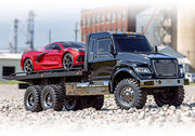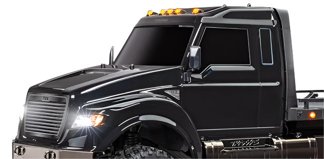 El Ultimate RC Hauler es el modelo TRX-6 ® más grande con una distancia entre ejes extra larga de 23,7" (603 mm) y una caja de gran tamaño para transportar sus modelos 4-Tec con estilo. El camión altamente detallado presenta pintura negra brillante intensa sobre accesorios de carrocería moldeados en cromo negro. para una apariencia intimidante que coincida con su actitud de gran camión.