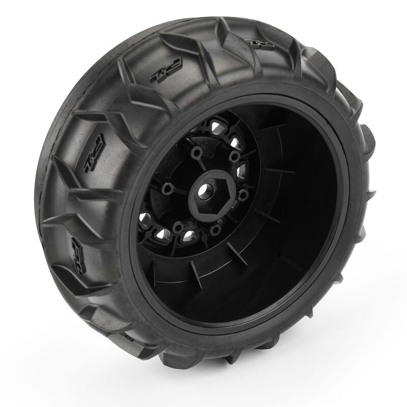Neumáticos para arena/nieve Pro-Line Dumont SC con paleta/costilla delantera de 2,2"/3,0" montados en ruedas hexagonales extraíbles de 12 mm Raid Black 6x30 (2) para camionetas SC 4x4 delanteras
