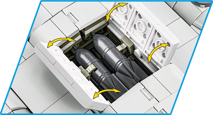 El Memphis Belle es la Fortaleza Voladora B-17 más famosa utilizada por las Fuerzas Aéreas del Ejército de los Estados Unidos (USAAF) durante la Segunda Guerra Mundial. El avión ganó popularidad gracias a su exitosa serie de 25 misiones de bombardeo sobre Europa. Una excelente película de guerra también cuenta su historia. El modelo de ladrillo realista EXECUTIVE EDITION incluye el esquema de pintura y las marcas de la máquina histórica y consta de más de 1300 elementos. Este impresionante modelo tiene una envergadura de 66 cm cuando está construido. Una vez construido, también se convertirá en una de las piezas más grandes de tu colección de ladrillos. ¡Al ver los sorprendentes detalles y admirar la cantidad de armas, descubrirás rápidamente por qué este avión fue llamado "Fortaleza Voladora"! Las dos figuras de piloto incluidas en el set presentan estampados muy detallados. El set también ofrece elementos móviles como ruedas, trenes de aterrizaje plegables, hélices, alerones y escotillas de bombas que se pueden abrir. El juego incluye un soporte de exhibición de bloques especial con una placa negra con el nombre del avión histórico. Gracias a las instrucciones intuitivas basadas en ilustraciones claras, la construcción es sencilla. El avión es un artículo imprescindible para todos los entusiastas de la historia, la aviación y la tecnología militar. Además, el gran número de piezas garantiza muchas horas de emocionante construcción. El conjunto se produjo íntegramente en Polonia, dentro de la Unión Europea.