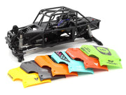 Where does the battery go? It is cleanly tucked away inside the driver-side body panel. Using a genius pin design, the battery tray is sized to accommodate a shorty style Lipo Battery (battery sold separately). This panel is also removable on the passenger side making it convenient storage for scale accessories.