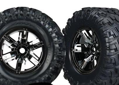 Llantas y ruedas Traxxas, ensambladas, pegadas (ruedas cromadas negras X-Maxx, llantas Maxx AT, inserciones de espuma) (izquierda y derecha) (2)