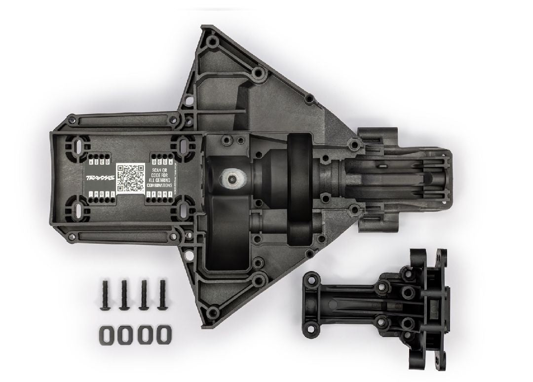Traxxas Bulkhead, rear (upper & lower)/ motor mount washers (steel) (4)/ 4x18mm BCS (4) (replacing #7727 & #7728 requires #5108 ball bearings (2))
