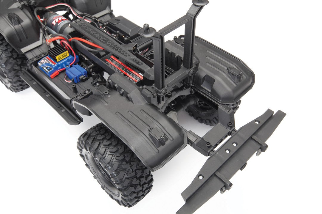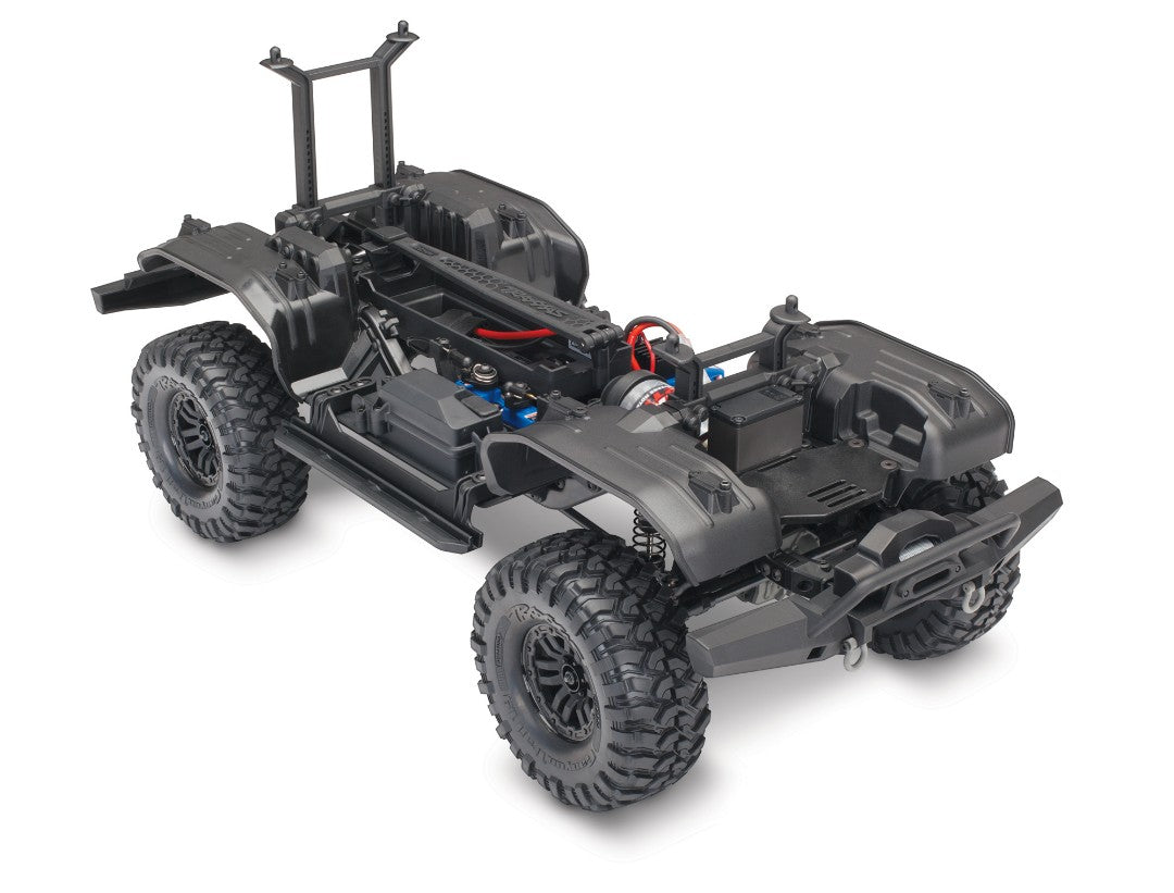 Traxxas TRX-4 Scale and Trail Crawler Chasis Kit: Camión Trail 4X4 escala 1/10, kit sin ensamblar, electrónica resistente al agua, con sistema de radio TQi de 2,4 GHz de 4 canales, control de velocidad XL-5 HV, transmisión alta/baja y bloqueo remoto Diferenciales. Requiere: Cuerpo, Batería y Cargador.