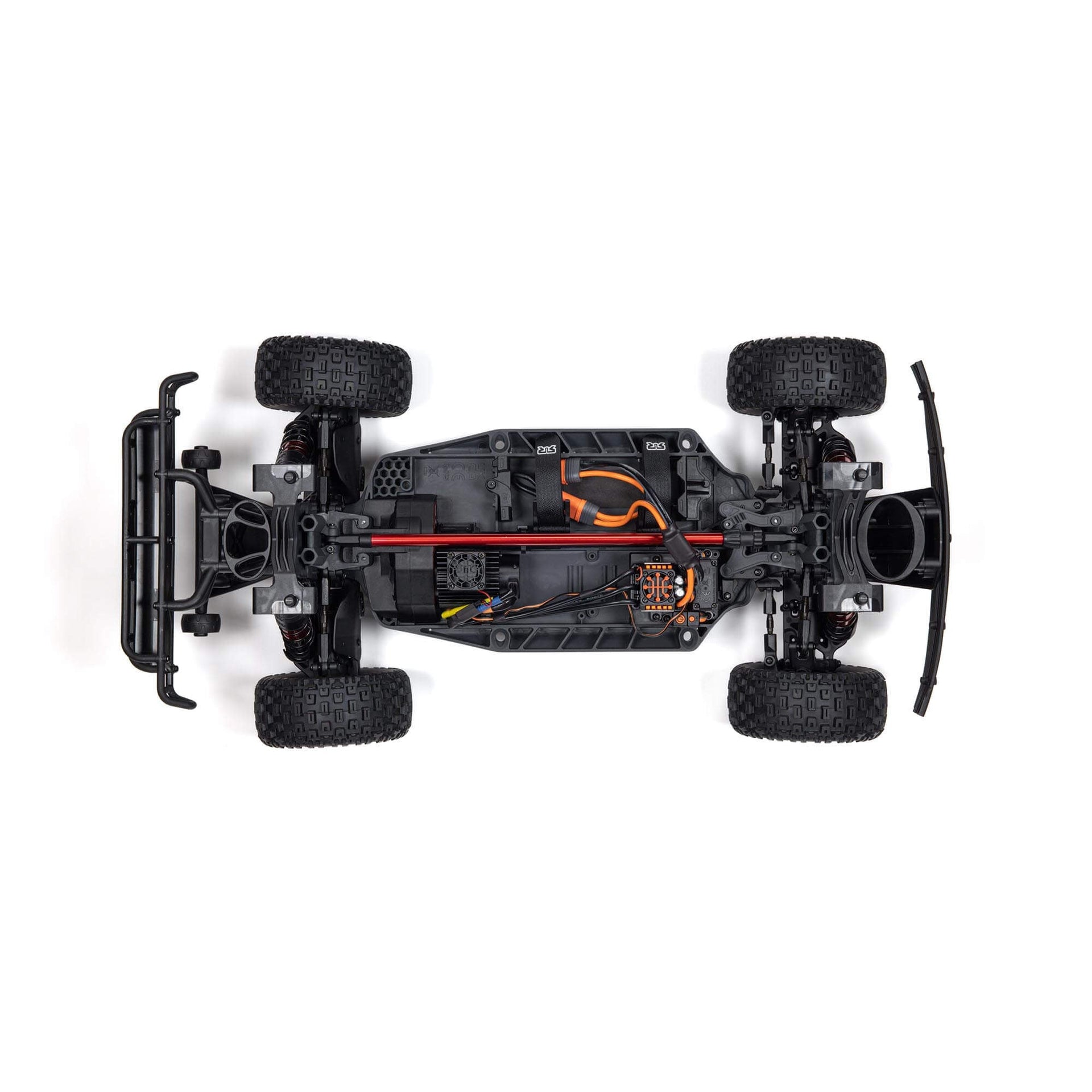If you’re a new driver, you’ll be able to set the throttle limits of the included 3-channel Spektrum SLT3™ radio at 50% or 75% until you’re ready to use the full speed potential. Then punch the throttle and let the dirt fly. The ARRMA MOJAVE 4S BLX 4X4 Desert Truck has multiple layers of defense against dirt and debris — including wishbone dirt guards, a chassis dirt drain, outdrive guards for enhanced protection from rocks, and most importantly, an inner body to keep internals clean.