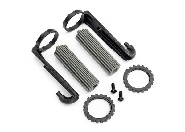 10966-GRAY Traxxas Reservoirs, shocks, front (2)/ 3x8mm BCS (2)