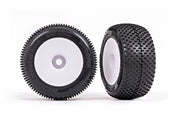 Los neumáticos Response Pro son lo último en rendimiento en carreras todoterreno. Un perfil más alto aumenta la mordida lateral y ofrece un mejor manejo en los baches, mientras que el compuesto ultrablando se adhiere a la superficie de la pista. La fila exterior de púas está contorneada para proporcionar la cantidad justa de mordida lateral para un giro suave y predecible. Los neumáticos de carreras Response Pro vienen premontados y pegados a ruedas parabólicas de 3,8 ″ con inserciones de espuma ajustadas para carreras. Las ruedas requieren bujes y tuercas de 17 mm.