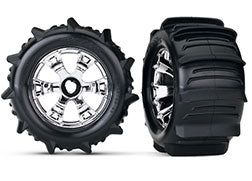 5672 Neumáticos y ruedas, ensamblados, pegados (ruedas cromadas Geode, neumáticos tipo paleta, inserciones de espuma) (2) (usar con tuercas y cubos de rueda estriados de 17 mm, pieza n.° 5353X) (clasificación TSM)