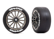 Llantas y rines, ensamblados, pegados (rines cromados negros de radios múltiples, neumáticos lisos de 2.0" con el logotipo de Traxxas®, inserciones de espuma) (trasero) (2) (clasificación VXL)