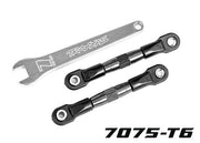Eslabones de inclinación, traseros (TUBOS anodizados en gris carbón, aluminio 7075-T6, más resistentes que el titanio) (2) (ensamblados con extremos de varilla y bolas huecas)/llave de aluminio (1)