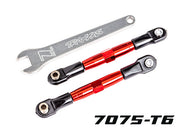 Bielas de inclinación delanteras (TUBOS anodizados en rojo, aluminio 7075-T6, más resistentes que el titanio) (2) (ensamblados con extremos de varilla y bolas huecas)/llave de aluminio (1)