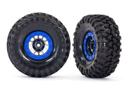 Neumáticos y ruedas, ensamblados, pegados (Método 105 de 1,9" cromado negro, ruedas estilo beadlock azules, neumáticos Canyon Trail de 4,6x1,9", inserciones de espuma) (1 izquierda, 1 derecha)