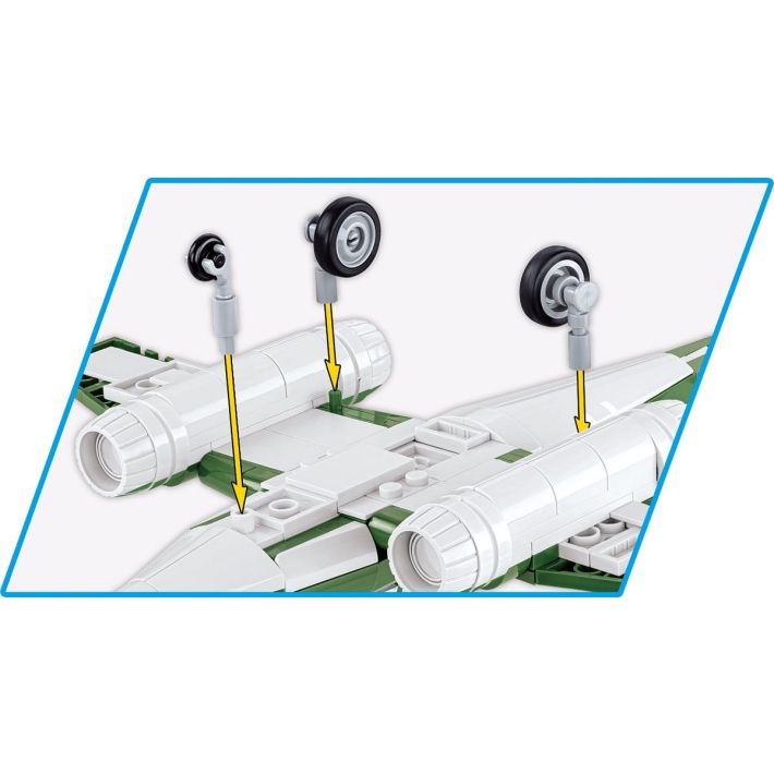 ¡Usa 250 bloques de construcción COBI para construir el legendario avión a reacción alemán de la Segunda Guerra Mundial! El modelo en bloque presenta impresiones de alta calidad y no tiene pegatinas. ¡El avión mide 23 cm de largo y 26 cm de envergadura y encaja perfectamente en nuestros enormes bombarderos fabricados en escala 1:48! Messerschmitt ME 262 también es un modelo fácil de construir, perfecto para comenzar tu aventura con los bloques de construcción COBI. Este es un avión que encantará a los entusiastas de la aviación, la tecnología militar y la historia. Construya historia, ladrillo a ladrillo, con COBI.