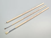 Este práctico juego incluye tres cepillos comúnmente necesarios para el acabado de modelos de plástico. Los cepillos con cerdas de crin tienen un mango de madera diseñado para reducir la tensión en la mano.