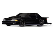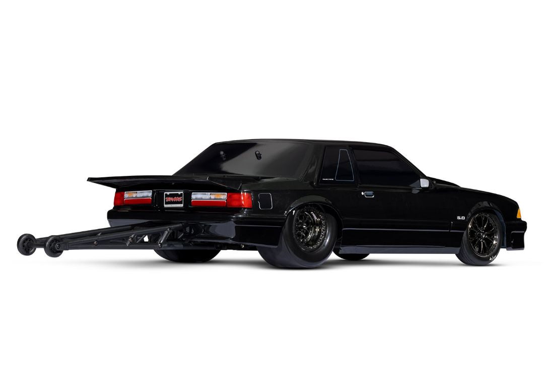 Carrocería Traxxas, Ford Mustang, carrocería Fox, negra (pintada, calcomanías aplicadas) (incluye espejos laterales, alas, retenedor de alas, postes de montaje traseros de la carrocería, parachoques de espuma y accesorios de montaje)