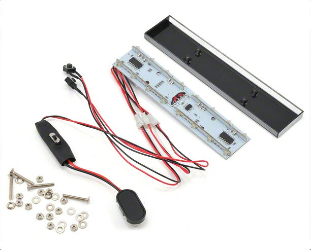 Esta barra de luces LED es el complemento perfecto para su vehículo policial o de emergencia. Las dimensiones están dimensionadas para encajar perfectamente en un cuerpo a escala 1/10. Cuenta con 16 LED en total montados en una placa de chip controlada por 2 interruptores momentáneos. Un interruptor controla los 4 LED rojos y los 4 azules en el panel frontal, mientras que el otro interruptor controla los 8 LED ámbar en la parte trasera. Los interruptores también ofrecen la opción de 9 modos de flash diferentes que permiten diferentes patrones y efectos estroboscópicos. Esta barra será el acabado perfecto en cualquier RC o modelo a escala.