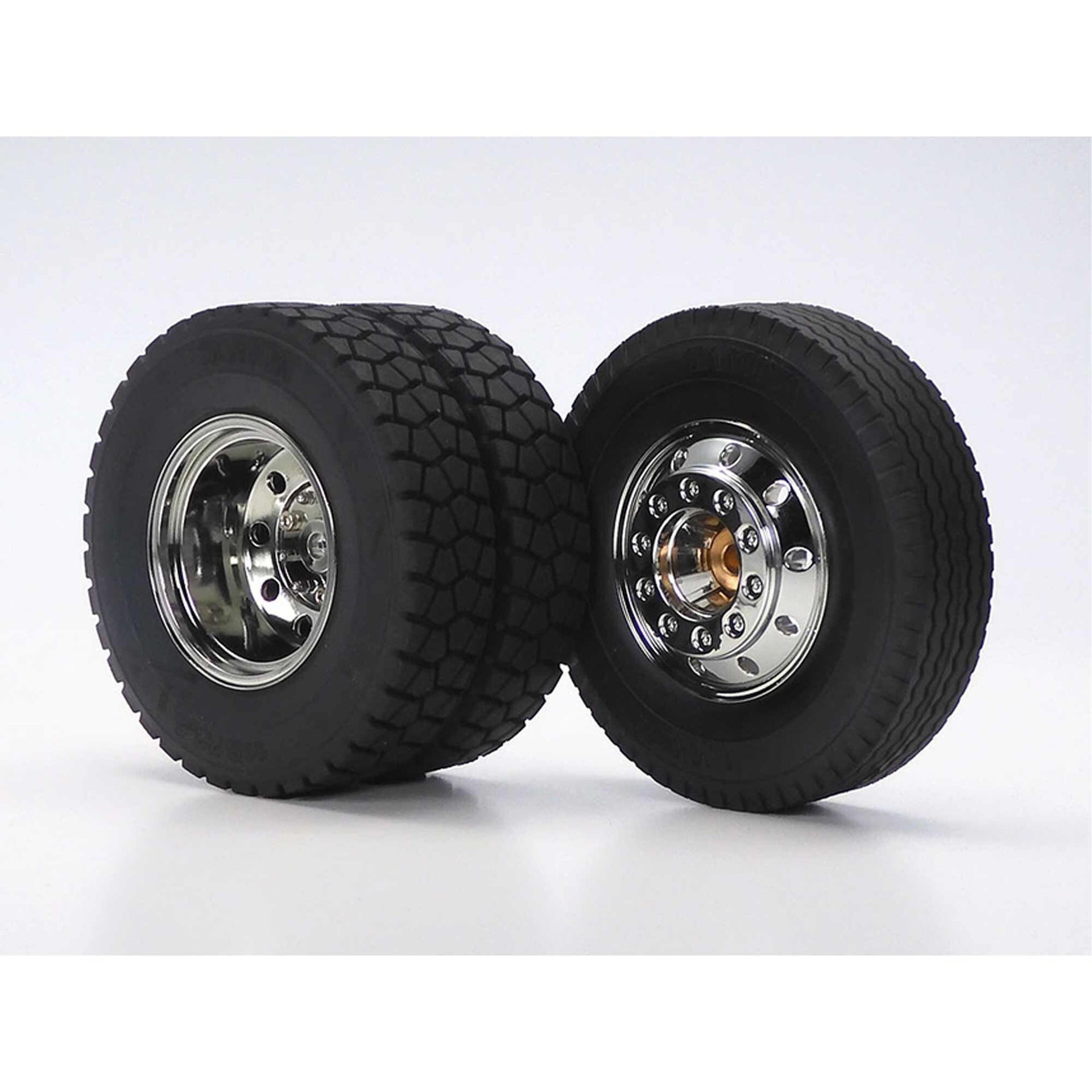 El kit incluye 12 juegos de ruedas y neumáticos. Modelados a partir de neumáticos reales para equipos de construcción, estos neumáticos funcionan como los reales, proporcionando la máxima tracción en el sitio de construcción.