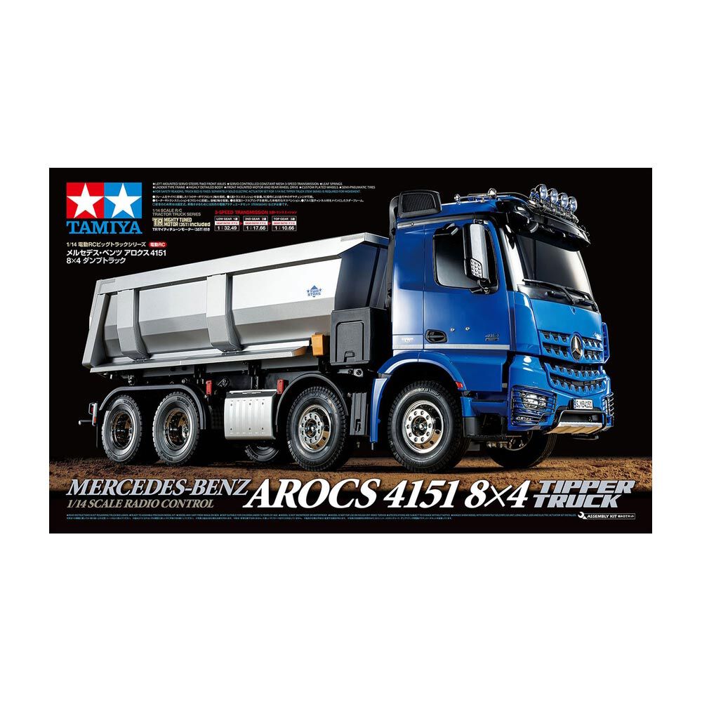 La forma del Arocs 4151 se recrea con una carrocería moldeada por inyección, que incluye representaciones de los rieles de la cabina, el conducto de admisión y otros detalles. Las piezas separadas recrean espejos laterales y visera, etc.