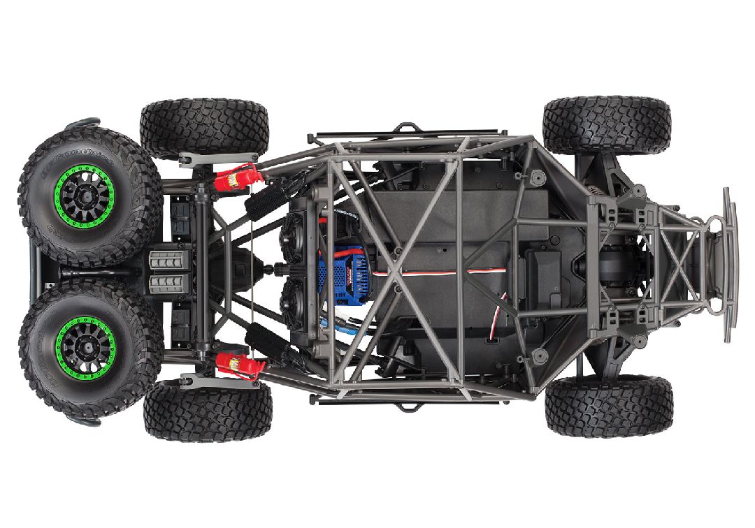 The Unlimited Desert Racer® combines Pro Scale® performance with extreme 6s power for the most thrilling RC driving experience possible. It drives like a real desert truck because it’s engineered like a real desert truck. A 4-link solid rear axle provides huge suspension travel with authentic driving dynamics. From the cantilever sway bars and high-voltage lighting system to the GTR shocks, Traxxas accurately reproduced a true desert racer in both form and function.
