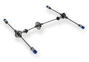 Powering this monster truck is a Traxxas VXL-6S Velineon ESC and a 2000kV Brushless Motor. Traxxas then used massive steel gears, a triangulated chassis and a center T-bar brace to hold up to the 6S power. A special aluminum motor cradle is used to secure the motor in place eliminating motor flex. The drive train features a torque-biasing center differential that distribute power evenly throughout the chassis. Solid steel axles are used front, center and rear to deliver the power to the wheels. The shock towers are 5mm thick and are tied directly to the center brace for further durability. Holding the truck up are large-bore GT-Maxx aluminum shocks mounted with 4mm hardware. Traxxas left no stone unturned and developed a truck that is ready for any terrain.
