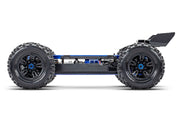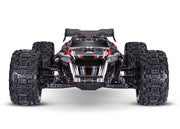 Powering this monster truck is a Traxxas VXL-6S Velineon ESC and a 2000kV Brushless Motor. Traxxas then used massive steel gears, a triangulated chassis and a center T-bar brace to hold up to the 6S power. A special aluminum motor cradle is used to secure the motor in place eliminating motor flex. The drive train features a torque-biasing center differential that distribute power evenly throughout the chassis. Solid steel axles are used front, center and rear to deliver the power to the wheels. The shock towers are 5mm thick and are tied directly to the center brace for further durability. Holding the truck up are large-bore GT-Maxx aluminum shocks mounted with 4mm hardware. Traxxas left no stone unturned and developed a truck that is ready for any terrain.