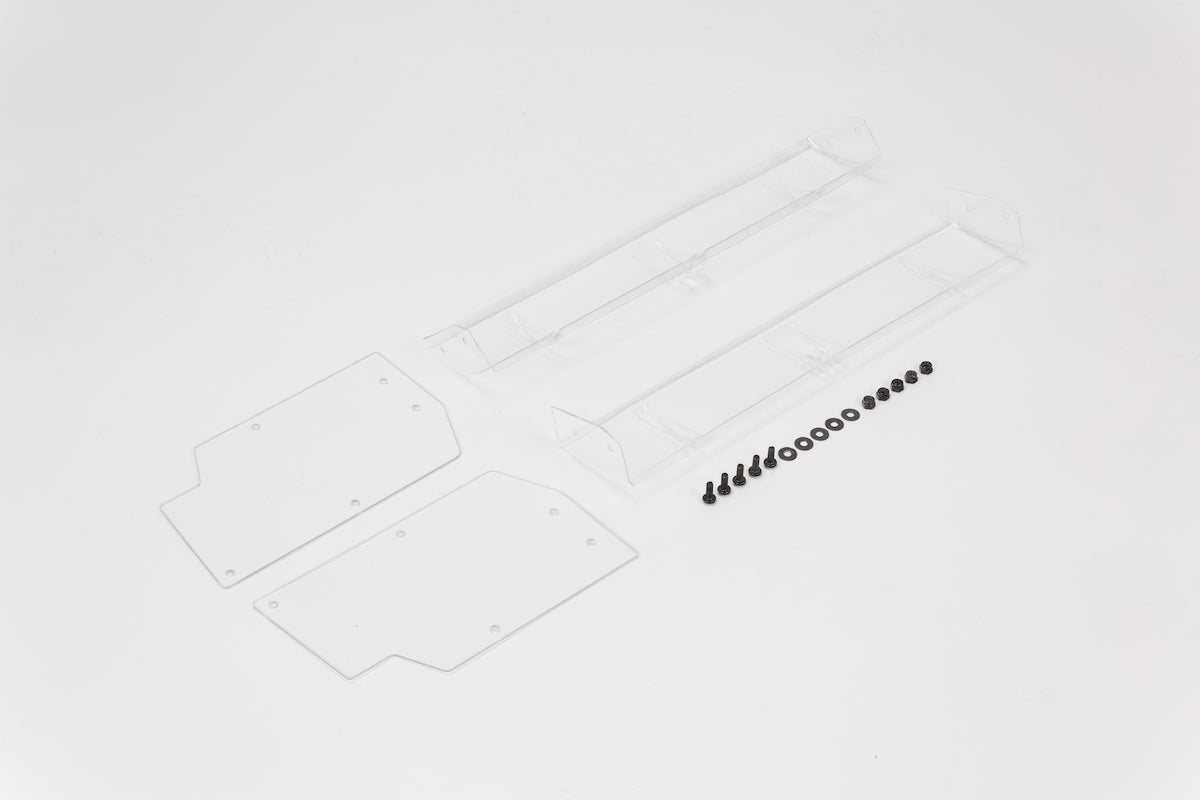 Ce Set d'ailes VENDETTA contient un aileron arrière à fort et à faible appui, des plaques d'extrémité d'aile gauche et droite ainsi que toutes les fixations nécessaires à leur fixation sur la carrosserie du VENDETTA 4X4.