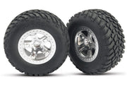 5873 Pneus et roues, assemblés, collés (SCT chrome satiné, roues de style Beadlock, pneus de course tout-terrain SCT, inserts en mousse) (2) (4RM avant/arrière, 2RM arrière seulement) (classé TSM)
