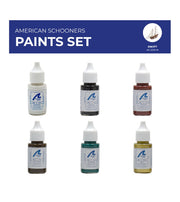Le set de peintures à l'eau pour modèles Schooners américains (Swift et autres) se compose de 6 pots de peintures différentes, chacun contenant 20 ml de produit. En ce sens, il comprend les couleurs de peintures suivantes : Off-White, Off-Black, Hull Red, Burnt Umber, Hull Green et Gold.