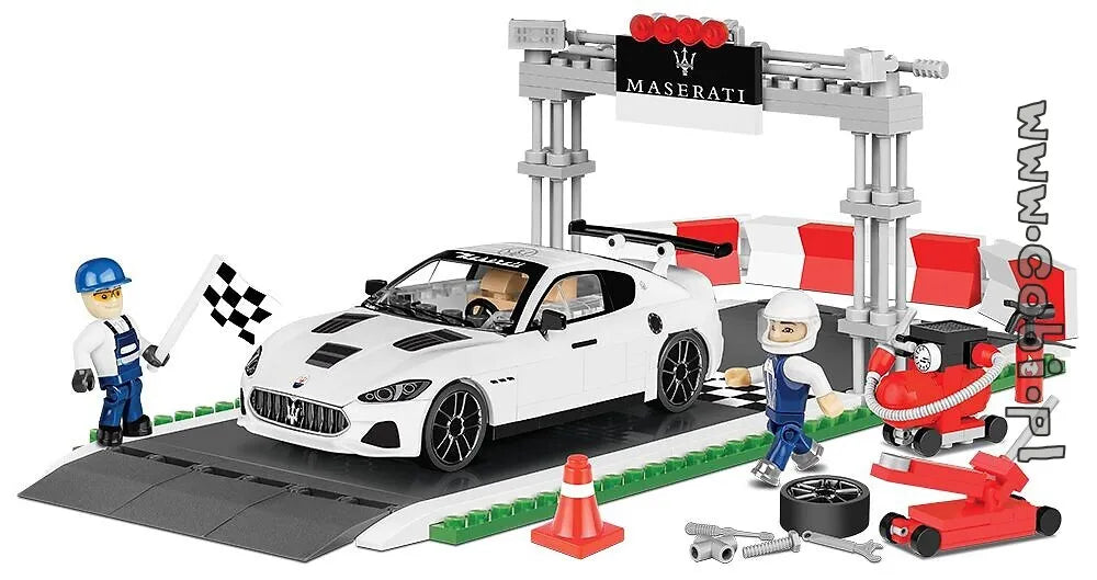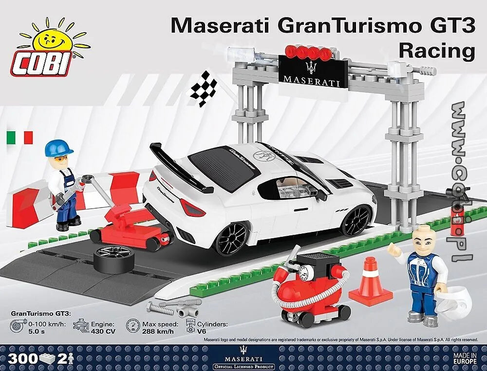 Du monde de COBI vient un modèle de la voiture Gran Turismo GT3 Racing. Le modèle est produit sous la licence de la célèbre marque automobile italienne Maserati. Cet ensemble est idéal à la fois pour tout collectionneur et fan d'automobile et très amusant pour les plus petits. L'ensemble comprend une position de départ, un garage, une figurine de mécanicien et une figurine de pilote de rallye, ainsi qu'un modèle de la Sports Maserati Gran Turismo GT3 Racing. Avec des formes de carrosserie spécialement conçues et des impressions couleur durables, les véhicules créés par COBI ressemblent à de petites œuvres. d'art. Une conception solide et des roues mobiles sur des pneus en caoutchouc spéciaux fonctionneront également parfaitement comme jouet.